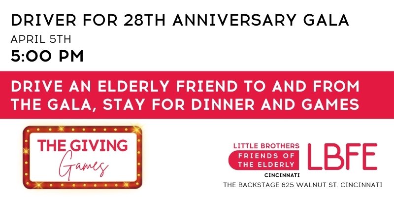 The Gala starts at 6:00 p.m. and ends at 10:00 p.m. Volunteers can begin picking up elderly friends as early as 5:00 p.m.