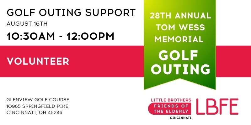 We need volunteers to help make our 28th Annual Tom Wess Memorial Golf Outing a day to remember! This special event supports Little Brothers – Friends of the Elderly, which has brought connection, joy, and friendship to some of Greater Cincinnati’s most isolated and vulnerable elders for over 27 years.