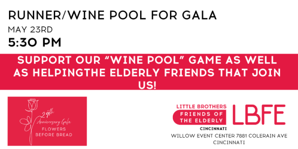 Volunteers will assist with the "wine pool" game as well as be a runner for the elderly friends that are joining us! We may have you make them a plate, help them to the bathroom, or anything else they may need!